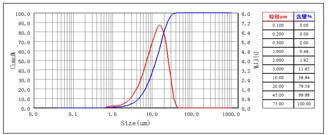 - PSD:D10=4.605μm, D50=12.16μm, D90=24.45μm